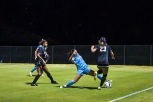 NMSU’s forward Ariana Leamons was another common intimidation on the field tonight, becoming an aggressive force with a bottom left of net shot that was only blocked only a sliver away by Ittel, and one of five shots she fired this game.